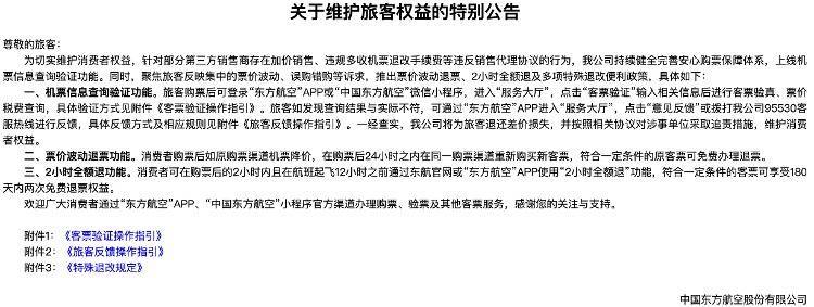 除了与昨年雷同提醒搭客可在航司官方平台进行客票验真、票价税费查询,三大航本年还建议购票后24小时之内发现更低廉的机票可免费退票的新规。