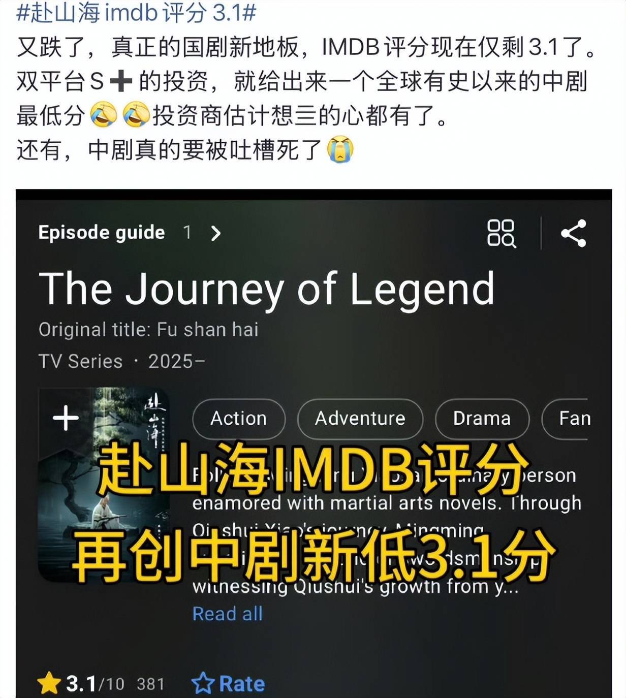 不光豆瓣低星差评一派,况兼在外网播出后,IMDB评分篡改低,当前仅有3.1分。