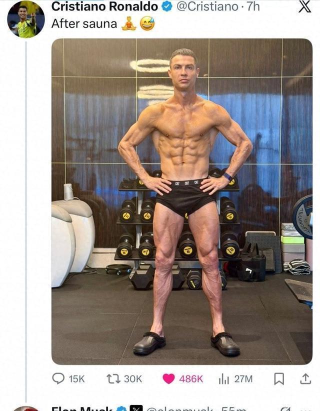 你敢信?40岁的C罗孤单肌肉刷爆全网,连寰宇首富马斯克皆坐不住了!