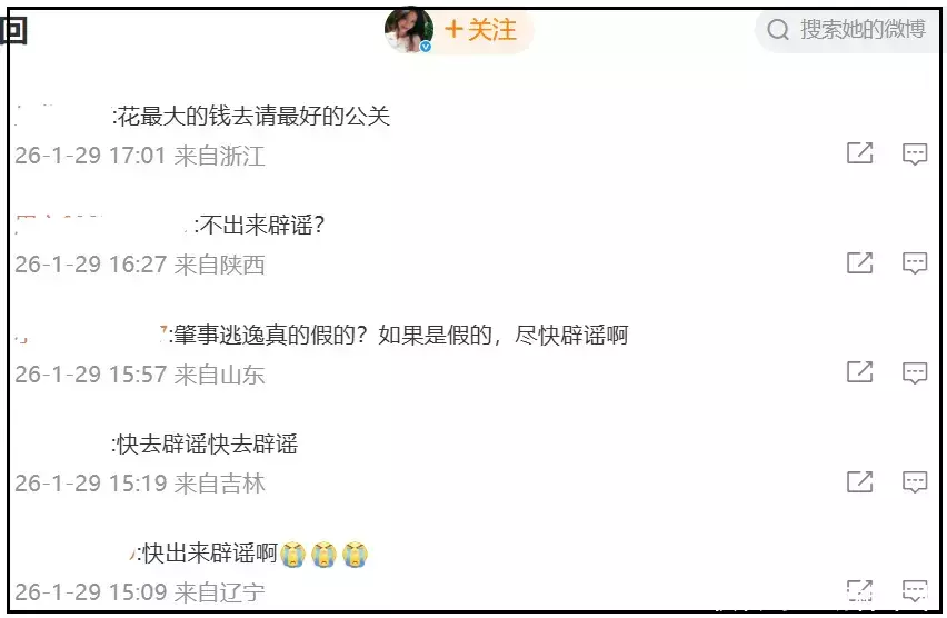 金晨本东谈主社媒和金晨责任室账号驳倒区均已消一火——粉丝拚命催促着金晨责任室露面辟谣,换来的唯有千里默。