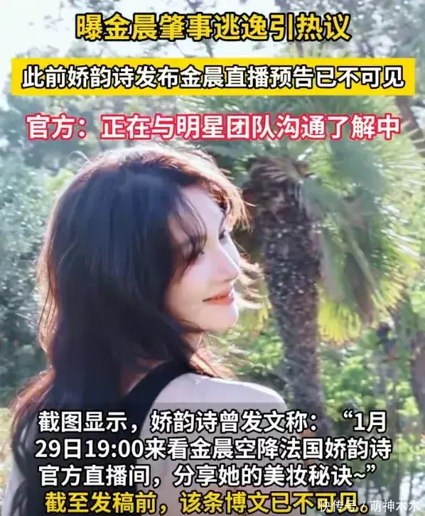 与此同期,金晨代言品牌账号驳倒区逐个消一火,品牌启动和金晨切割,先是删除了金晨直播预报动态,紧接着客服回报示意已知情,阐发直播行动取消。