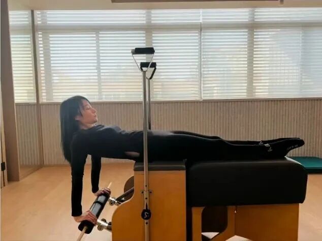关注两个孩子之余,还抽空健身,每周坚捏普拉提、冥念念,津润身心;