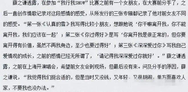 没念念到她竟然和薛之谦、胡彦斌齐谈过!薛之谦的热点单曲《正经的雪》为她而作,胡彦斌在综艺提及她泪洒现场。
