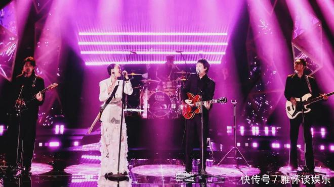 那英+回春丹《鲜花》,那姐透澈的松懈了,那英孤苦摇滚格调的穿搭,还抱着吉他。现场还玩起了乐队,还有煽情的表白,玩high了,真的能从《鲜花》里听出英子的爱重啊!