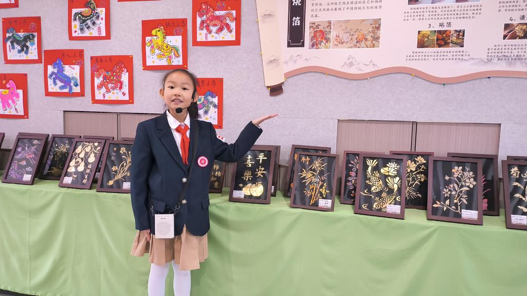 历练团参不雅了学校艺术空间的“非遗润校园·匠心绘花果”非遗工艺画展。展览展出了学生应用掐丝搪瓷、烧箔画、锡纸錾刻等工艺创作的作品,这些作品的完成成绩于家长的援救和社区资源的对接。