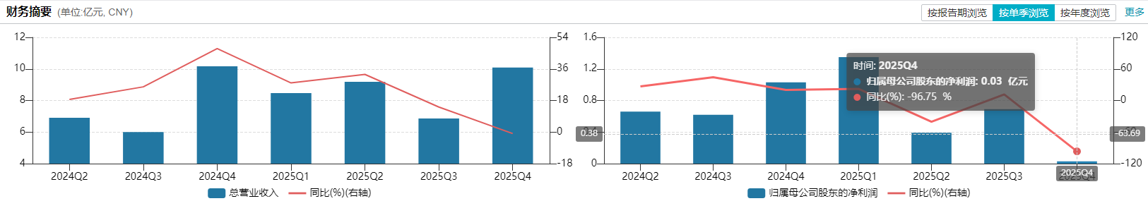2025年,丸好意思生物的功绩呈现营收与盈利严重倒挂的走势。